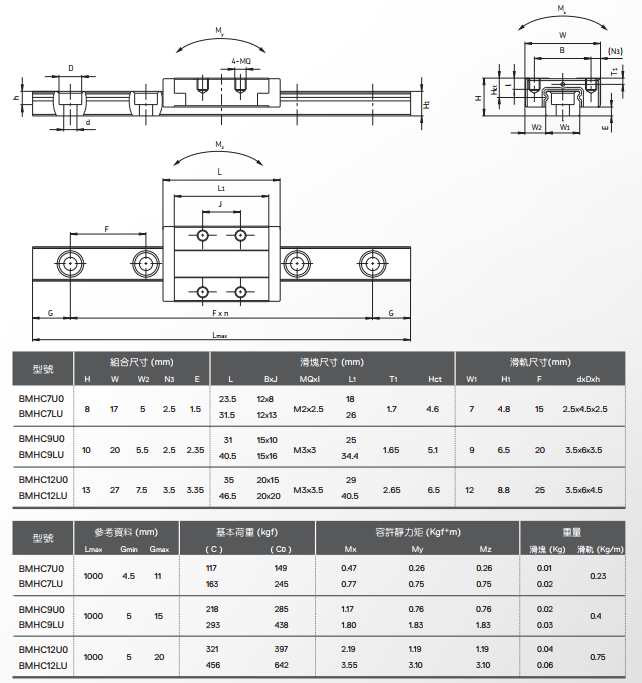 ■ 微型BM系列具備兩種精度選擇:精密級(P)、高級 (H)