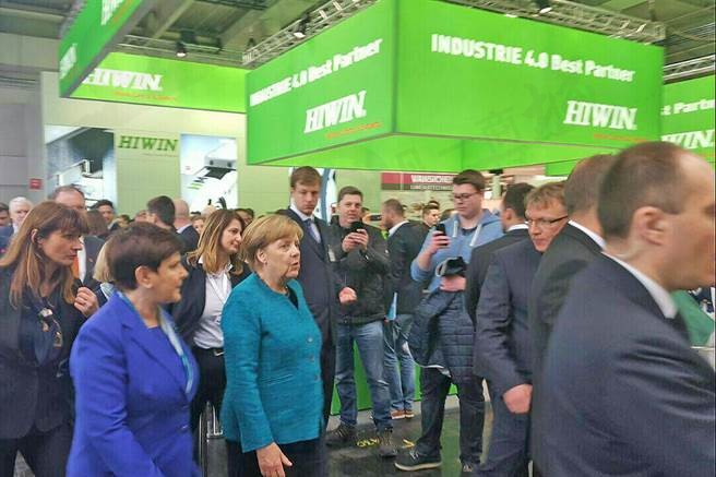 漢諾威工業展開展首日,德國總理梅克爾造訪上銀科技展臺,上銀主管表示,有了梅克爾到訪幫忙造勢,開展以來人潮絡繹不絕。