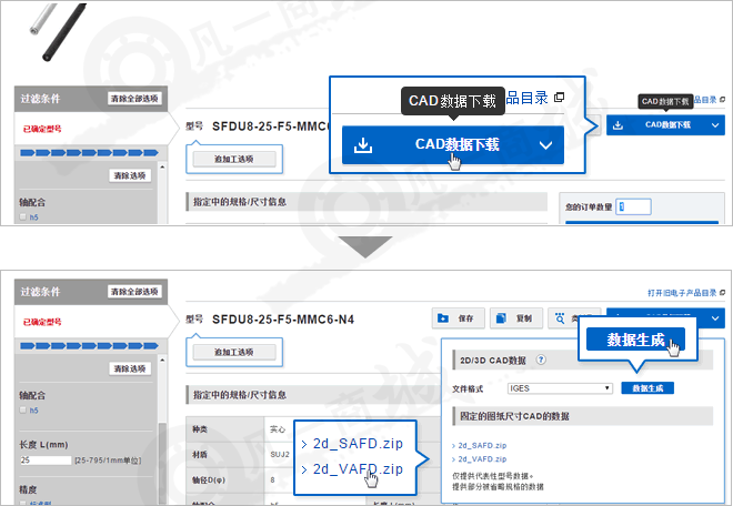 確定型號后,請點擊「CAD數據下載」按鈕,選擇符合的CAD數據。