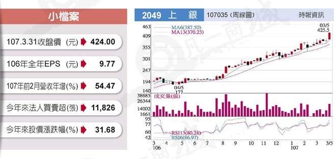 上銀大廠(hiwin)因半導(dǎo)體、汽車、汽車電池、光電及工具機等產(chǎn)業(yè),對滾珠螺桿、直線導(dǎo)軌及單軸機器人需求有增無減而受益,還被美國英特爾及韓國三星等半導(dǎo)體大廠視為戰(zhàn)略合作伙伴,目前舊廠年底前產(chǎn)能滿載,訂單能見度看到明年上半年,今年下半年營運優(yōu)于上半年。