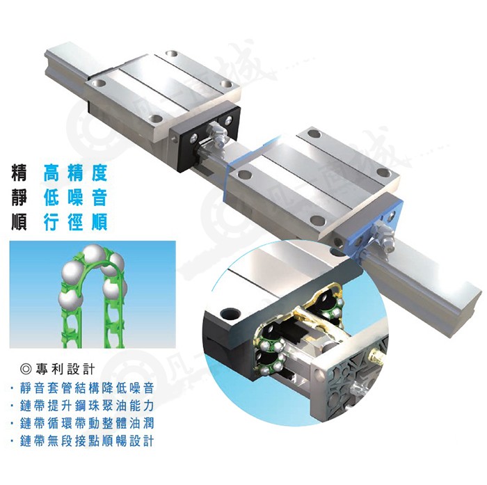STAF導軌具有高精度、低噪音、導程平順三大特點,擁有多項發(fā)明專利:靜音套管設計,鏈帶提升鋼珠聚油能力,循環(huán)鏈帶提升由潤均勻分布,