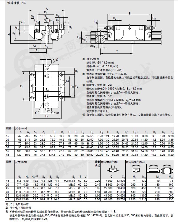 加裝件可以從滾珠滑塊的上面或下面通過螺紋連接安裝1)