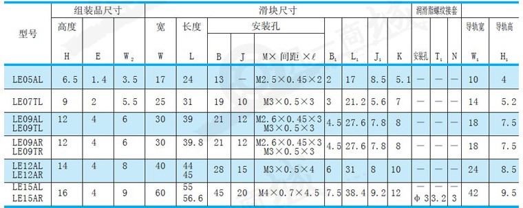 NSK導軌型號:PE05、PE07、PE09、PE12、PE15、P1E05、P1E07、P1E09、P1E12、P1E15