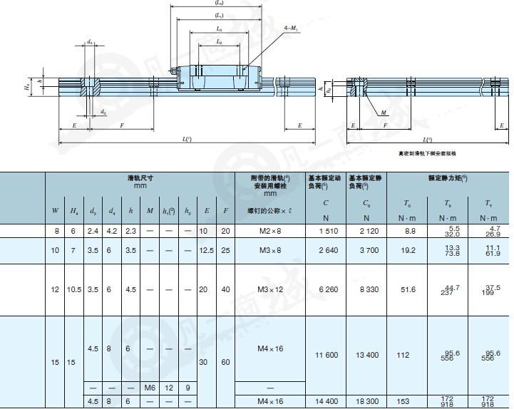 2、安裝LWH系列IKO導軌時,將IKO導軌及滑塊的安裝基準面B、D正確地對準工作臺及底座的安裝基準面進行固定。